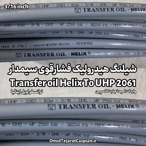 - کد روی شیلنگ: Transfer Oil Helix TO UHP 2061 6SW 3/16 DN5 WP 2500 bar / 36200 psi Made in Italy