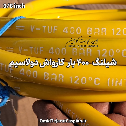 شیلنگ فشارقوی سوپر هیدرو واش – نوع 2SC – سایز ۳/۸ اینچ – با روکش پلی یورتان زرد (پلی اورتان (به انگلیسی: Polyurethane ) به دستهای از مواد شیمیایی گفته میشود که از واکنش پلی الها و ایزوسیاناتها بهعنوان مواد اصلی تشکیل دهنده ساخته میشوند)