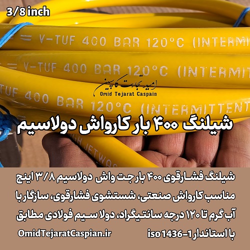 خرید شیلنگ کارواشی دو لا سیم فشار قوی 400 bar سایز 3/8 اروپائی، لیست قیمت شیلنگ کارواشی دو لا سیم فشار قوی 400 bar سایز سه هشتم اینچ تولید اروپایی – شیلنگ فشارقوی V-TUF با فشار کاری ۴۰۰ بار – تحمل دمای پیک تا ۱۲۰ درجه – شیلنگ بسیار مقاوم جتواش، قطر اسمی DN10 / 3/8 – مطابق استاندارد ISO 1436-1 و EN 853 – ساخت اتحادیه اروپا