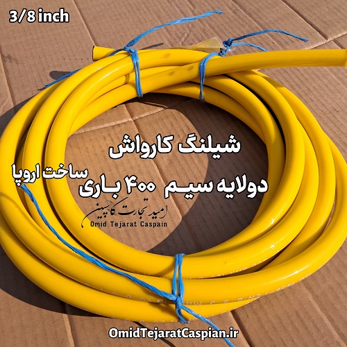 شیلنگ کارواشی دو لا سیم فشار قوی 400 bar سایز 3/8 با روکش پلی اورتان زرد رنگ