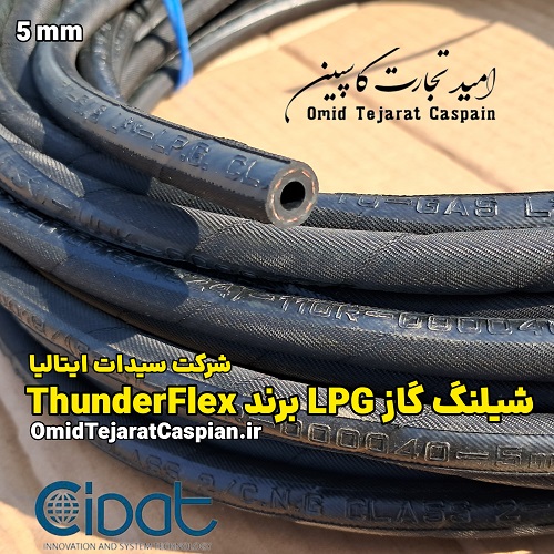 شیلنگ گاز LPG برند THUNDERFLEX سایز ۵ میلیمتر برای انتقال گاز LPG در خودرو و مصارف صنعتی وارداتی تاندرفلکس شرکت سیدات ایتالیا lpg gas hose brand thunderflex